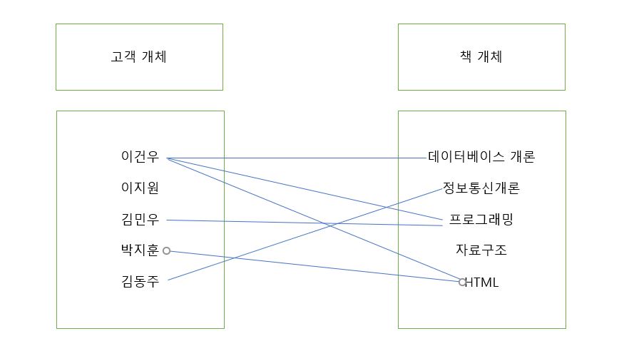 개체 A의 각 개체 인스턴스가 개체 B의 개체 인스턴스 여러 개와 관계를 맺을 수 있고,